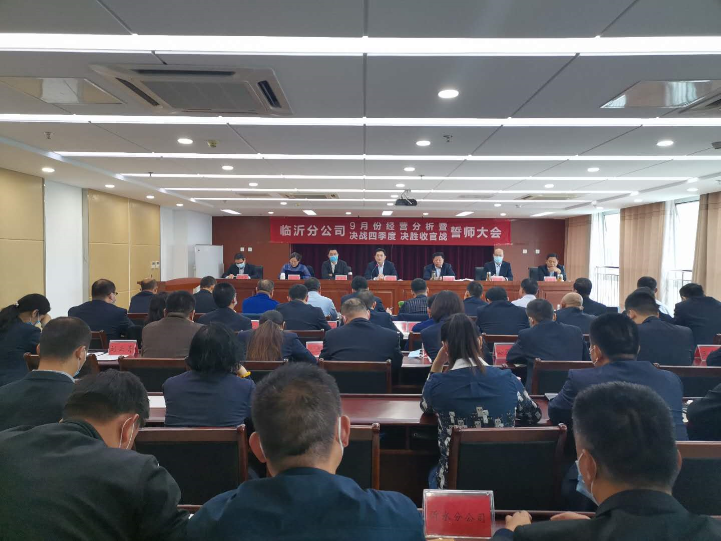 本網(wǎng)訊 10月13日,臨沂分公司召開9月經(jīng)分會(huì)暨“決戰(zhàn)四季度 決勝收官戰(zhàn)”誓師大會(huì),深入分析公司前三季度形勢,研究部署下一階段重點(diǎn)工作,進(jìn)一步動(dòng)員公司上下明確目標(biāo)定位,堅(jiān)定必勝信心,決戰(zhàn)四季度,決勝收官戰(zhàn),確保全面完成年度任務(wù)目標(biāo)。